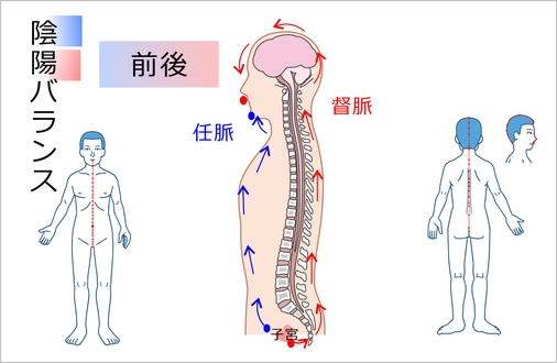 体幹中央(背骨の前面と後面)鍼灸では(任脈にんみゃく 督脈とくみゃく)
